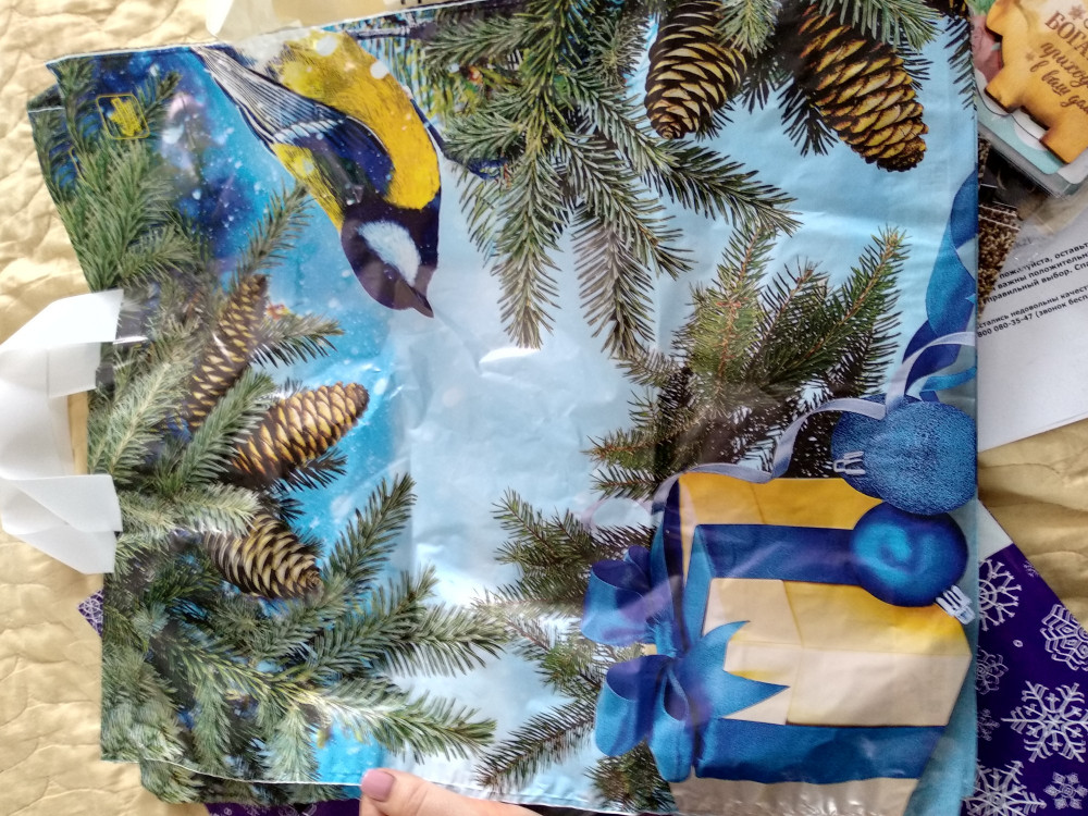 Пакет как пакет, не бумажный. Я хотела бумажный. Единственно - рисунок зимний.