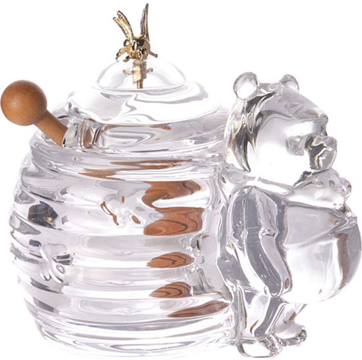Взяла на подарок любимой бабуле, Винни Пух и пчёлка будут радовать ее холодной зимой. Удачный дизайн: с мёдом будет смотреться еще красивее; тяжелая, устойчивая баночка, стекло прозрачное, толстое литье, по корпусу пчёлки из стекла и золотая металлическая на крышке - очень нарядно. Веретено для мёда миниатюрное, дерево качественно обработано. Цена, конечно, в сравнении с другими баночками высокая, но она того стоит. Пожалеть не пришлось, очень понравилась. Спасибо!