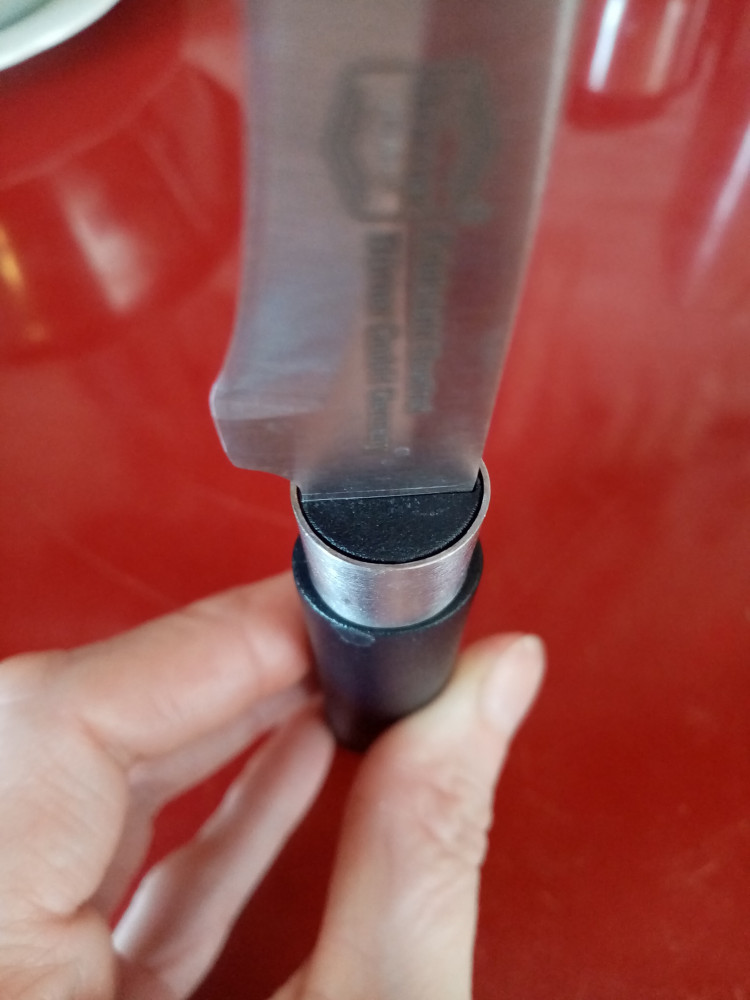 Сами ножи очень хорошие, очень остро заточены, качественная сталь, достаточно тяжелые, смутила форма самого маленького - а он оказался очень удобным для чистки всего, первые два раза порезалась, потом приноровилась ))) Ручки не скользкие, но не понравилось, как они сделаны - по фото кажется, что место крепления лезвия к ручке цельное, т.е. начало ручки - как продолжение/часть лезвия, но там только металлический ободок и есть зазоры между местом вставки лезвия и ручкой и между ручкой и ободком, куда может затекать/забиваться что угодно, что не очень гигиенично и неудобно очищать. Это огромнейший минус. Попробую сделать еще один отзыв с фото для наглядности - сложно объяснять.
