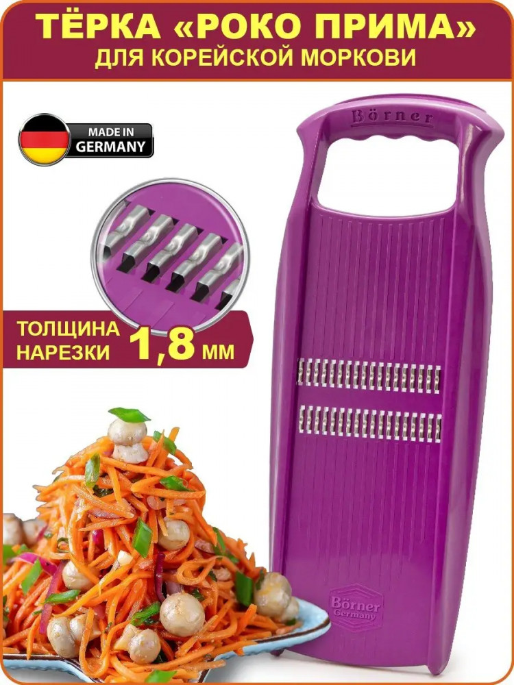 Сегодня мне доставили мою мечту-тёрку БЁРНЕРА ROKO, модель PRIMA для корейской моркови! Качество, как всегда, на высоте, удобная ручка, острейшие ножи и через 5 секунд морковь превращается в идеальную соломку. Я счастлива! Спасибо огромное, что вы есть, и мы можем пользоваться таким превосходным, качественным товаром многие годы.