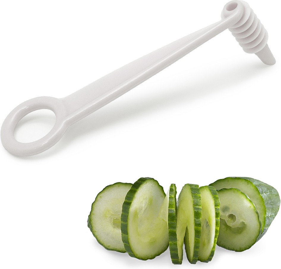 Ножик отличный. Спиральки получаются длинные, просто немного надо приноровиться. У меня 10-летний сын с первого раза такую спиральку из огурца сделал. Раньше у меня был металлический ножик, он быстро погнулся и ничего не получалось нарезать. Так что этот товар рекомендую