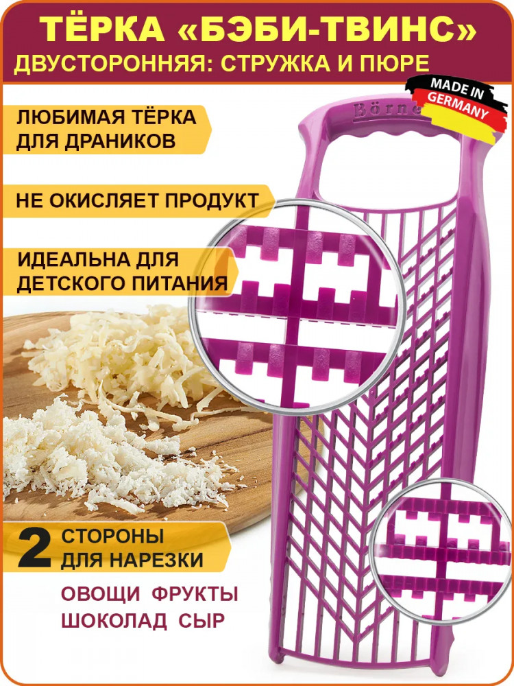 Для мелкого измельчения продуктов отлично подходит, но не ждите, что она натрет их сама ... Это обычная терка, просто изготовлена из пластика. Со своими функциями справляется