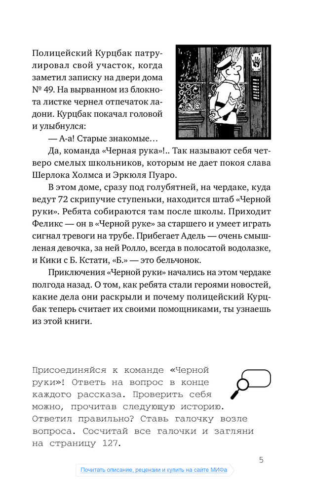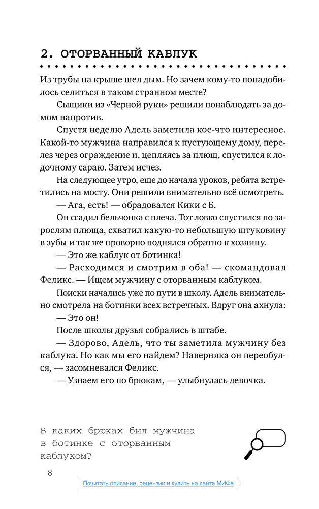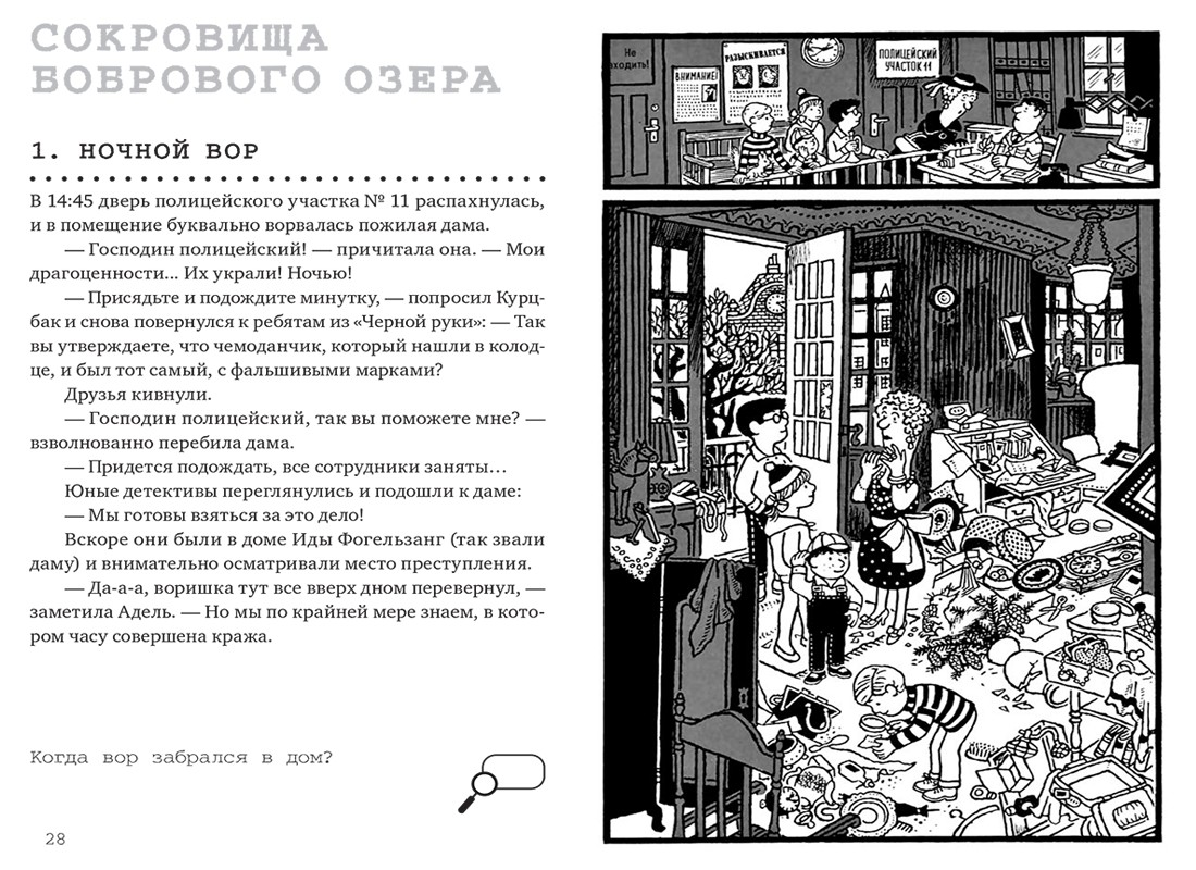 Читаем эту книгу всей семьей. Детективные загадки с одной стороны посильны для ребенка, с другой стороны не примитивны и разнообразны. И идея, отмечать "раскрытое" дело на странице, очень понравилась!