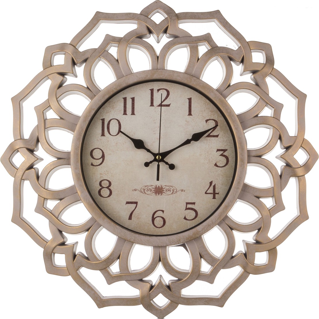 Часы красивые, достаточно большие. Цвет ажура как бы покрыт патиной, имеет вид потёртости, на фото этого не видно. Ходят бесшумно, о точности хода пока ничего сказать не могу. Батарейки в комплекте нет.