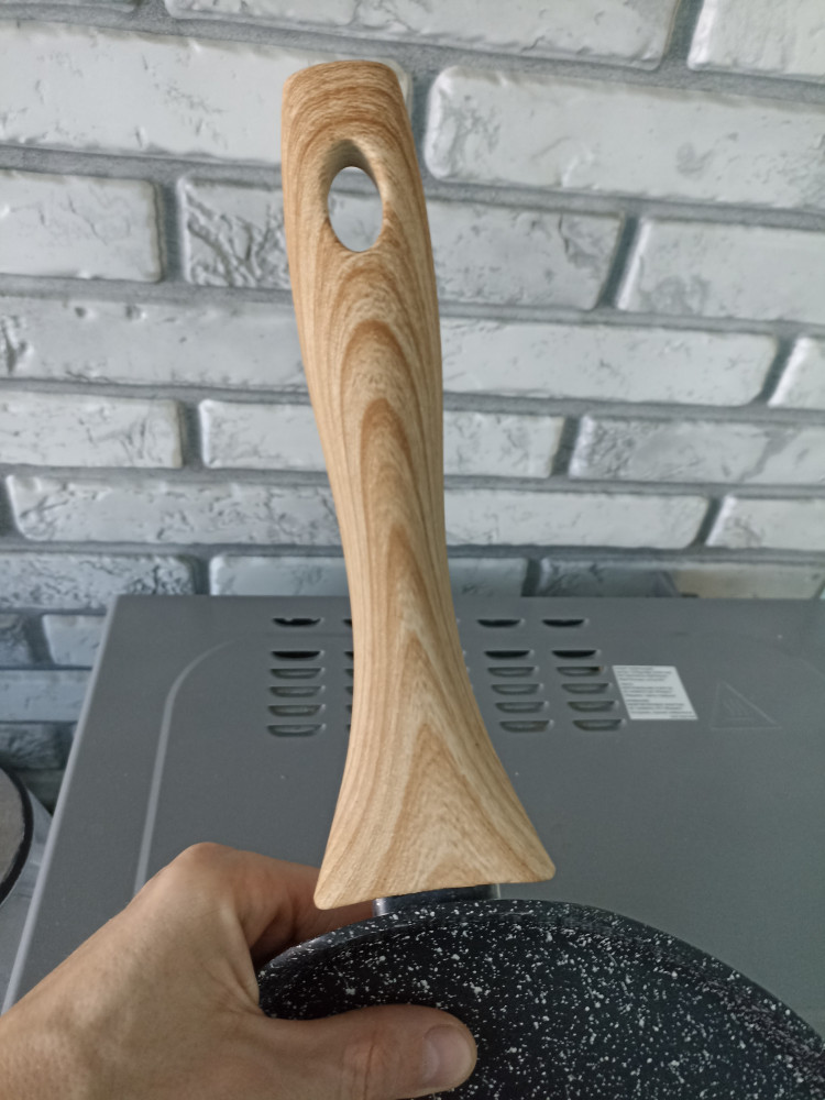 Удобная ручка, средний размер самое то, не прилипающая поверхность , спокойно можно жарить без масла.