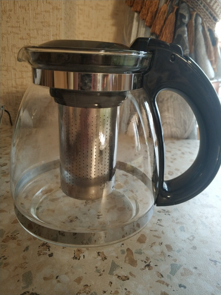Просто отличный чайник! Одни плюсы: 1. Большой размер 2. Ручка пластиковая, крепкая. 3. Фильтр стальной, а не пластмассовый. 4. Цена демократичная. 5. Удобная форма. Ничего не расплескивается. 6. Мыть удобно. 7. Люблю именно стеклянные чайники, видно, сколько чая осталось.