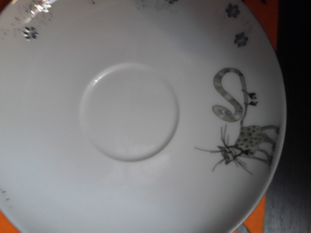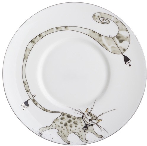 Мне пришло блюдце с другим рисунком. На фотографии кот с большим хвостом на всю тарелочку , что смотрится эффектно, а у меня совсем маленький кот.