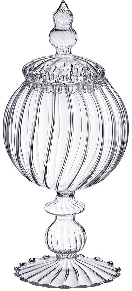 Красивая. Очень тонкое стекло, почти невесомое. Дома под конфеты - самое то. Вкупе с большой, точно такой же конфетницей и большим клошем, будет смотреться еще интереснее.