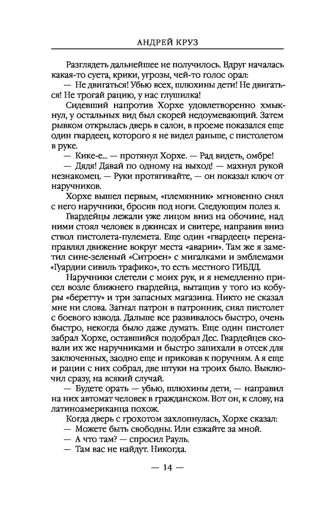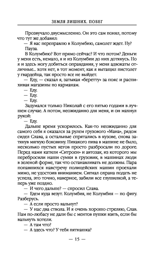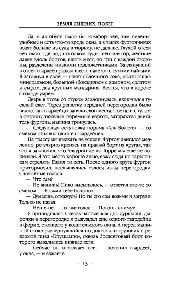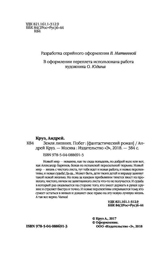 Земля лишних. ПобегВ данный момент этот товар отсутствует в продаже. Возможно, у нас найдется аналогичный или похожий товар здесь. Серия: Новый фантастический боевик Новый мир — ?неважно, как ты сюда попадешь, по доброй воле или вот, как Александр Баринов, бежав из испанской пересыльной тюрьмы. Новый мир — ?жизнь с чистого листа, тут тебя ждет и новая работа, и новые перспективы, и новая судьба! Да-да... Может быть, дети твоих детей и вправду заживут такой новой жизнью. Но пока за каждым прибывшим тянется хвост из прошлого, чистого, ничем не запятнанного листа что-то не получается. И судьба в который раз оказывается на стороне того, кто умеет держать в руках оружие и стреляет быстро и точно. И новые перспективы открываются тому, кто сумеет остаться в живых и докажет свое право на эту новую лучшую жизнь. А так все верно. Vamos! |