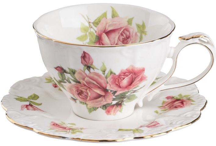 Набор красивый,но очень тяжелый.Чашки и блюдца толстостенные.Ни о каком изяществе речи быть не может. Если в эти чашки налить чай, то вес будет не менее 500гр.Из-за этого пришлось отказаться.А на фото очень понравился.