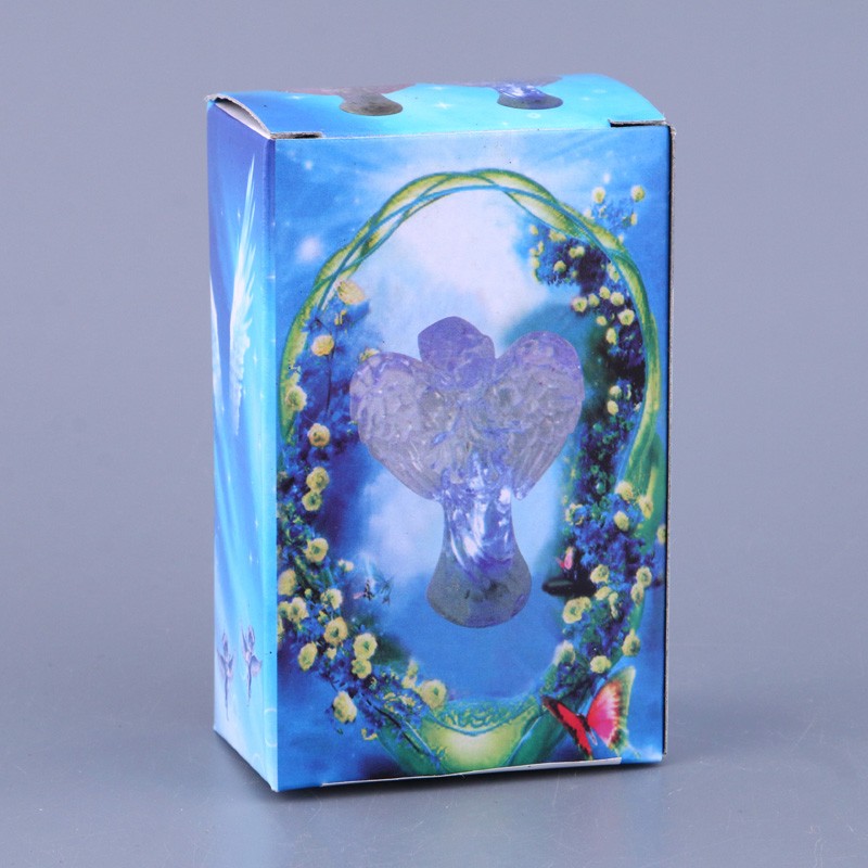 Фигурка Ангела полностью соответствует фото. Она больше похожа не из стекла, а из тонкой прозрачной пластмассы, что еще лучше - менее хрупкая. Цвета при включении переливаются из одного в другой. Можно выключить и будет просто нежный прозрачный ангел с золотой окантовкой крыльев. Сувенир мне понравился. Это то, что я хотела.