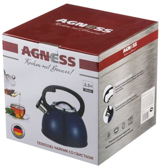 Agness Чайник со свистком (2,5 л)-30% +183 лёгкий аккуратный дизайн долговечность тихий свисток ручка нагревается