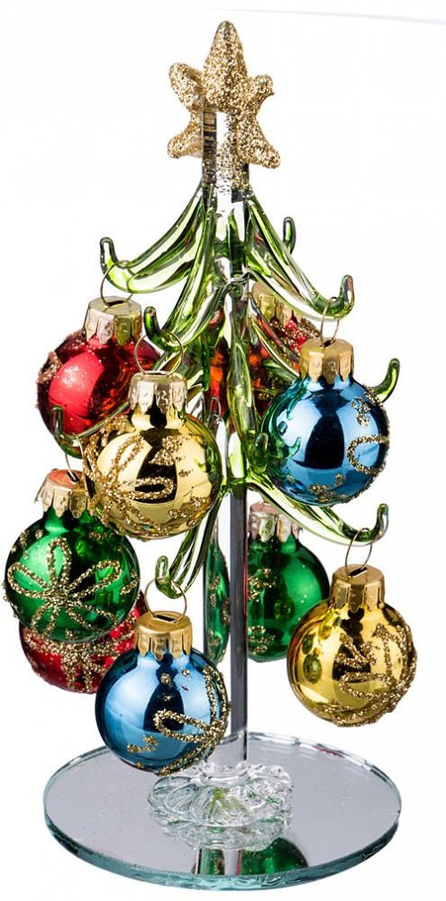 Ёлочка очень красивая. Шарики ярко матового цвета с блёстками. Звезда полностью покрашена.