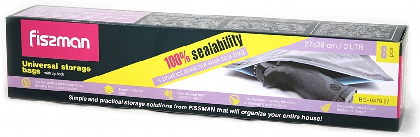 Компания Fissman предлагает идеальный вариант в помощь при ведении хозяйства - гермитично закрывающиеся пакеты из плотного пищевого пластика. В первую очередь, пакеты предназначены для хранения пищевых продуктов в холодильнике и морозильной камере, в том числе жидких и сыпучих. Благодаря герметичной застежке, перспектива продлить жизнь продуктов порадует любую хозяйку. Еда не будет сохнуть и заветриваться, не будет впитывать посторонние запахи. На пакете предусмотрено информационное поле, в котором можно отмечать дату упаковки для хранения. Пакеты также можно использовать для экономии пространства при хранении различных мелочей. прозрачные стенки позволяют видеть, что храниться в пакете.