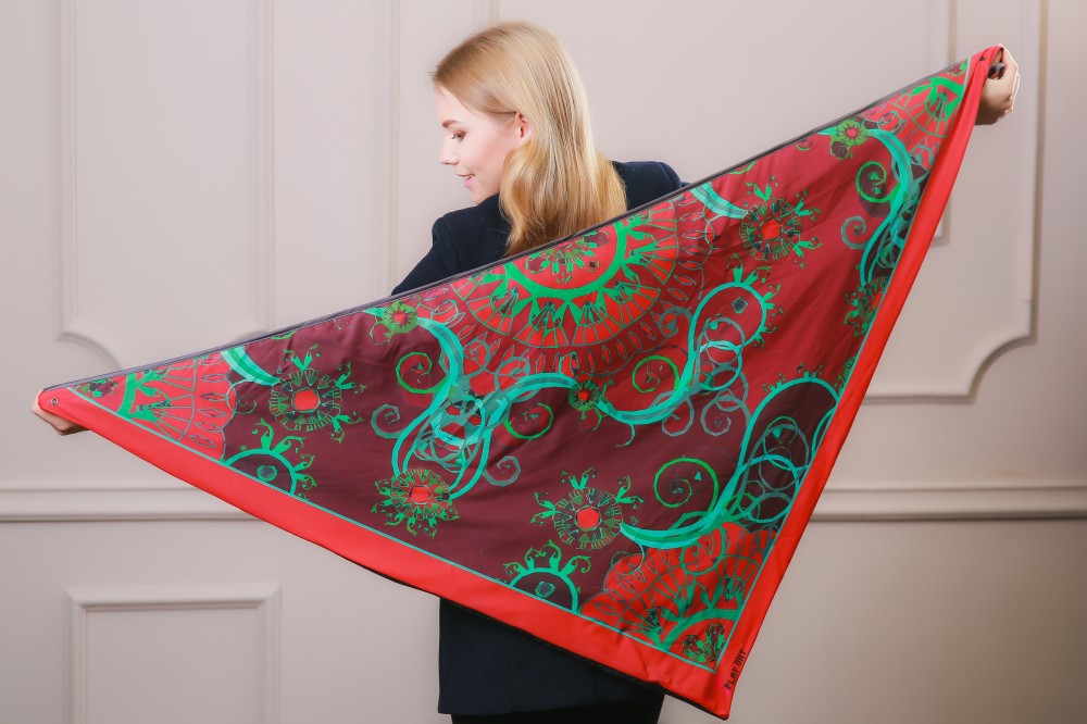 Платок шикарен. Не такой красный, как на картинке, расцветка более сдержана, что порадовало. Мягкий, очень легкий, не топорный и объемный, как может показаться по картинке. Покупкой очень довольна