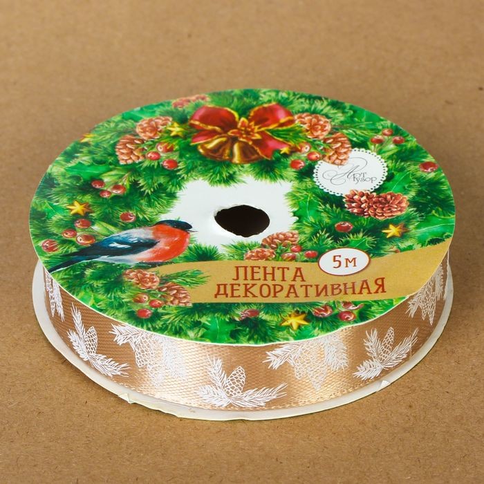 | Арт Узор Лента декоративная атласная «Еловые веточки» (1,5 см х 5 м)