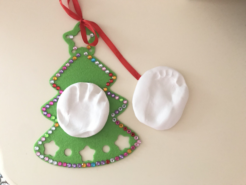 Раскрасьте слепок, декорируйте его блестками или создайте подвесное украшение на ленте, которое станет замечательным подарком для родных и близких.