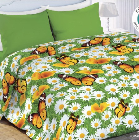 Приятно зимой лечь в ромашки в окружении сочной зелени!! Заказывала два 1,5 спальных комплекта этой расцветки и очень довольна. А недавно увидела такой же семейный, не удержалась и заказала в подарок дочери. Очень сочный цвет и качество хорошее.