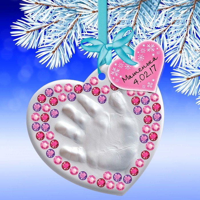 Раскрасьте слепок, декорируйте его блестками или создайте подвесное украшение на ленте, которое станет замечательным подарком для родных и близких.
