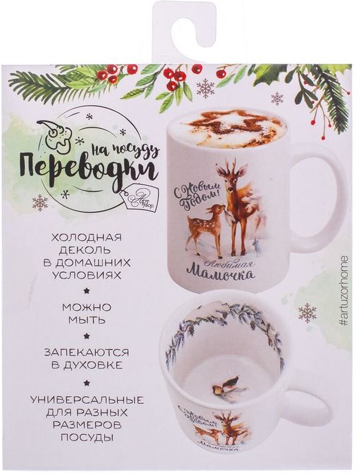 С помощью деколи или переводных наклеек вы сможете не только оригинально украсить тарелочки и кружечки, но и создадите эксклюзивные подарки на Новый год. Добрые надписи и милые изображения поднимут настроение и помогут создать атмосферу праздника, тепла и уюта.