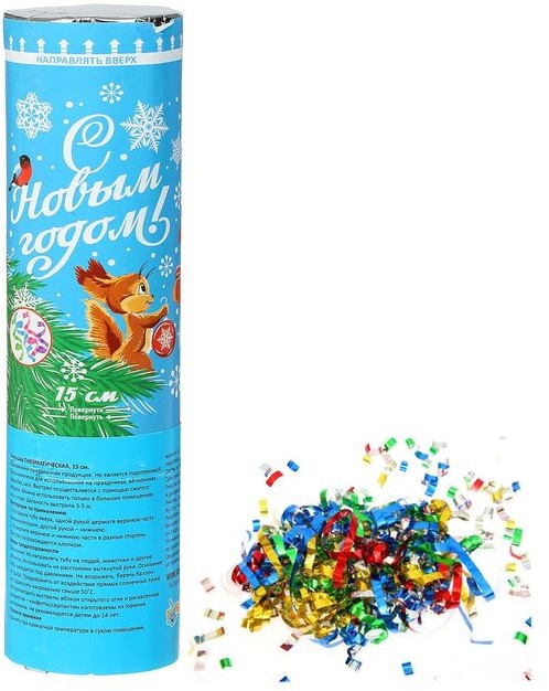 Пневматическая поворотная хлопушка стреляет конфетти и фольгой. Такой атрибут — это не пиротехника, а значит, вы можете безопасно устраивать фейерверки в помещении и на улице. Сделайте зимнее торжество ярким!