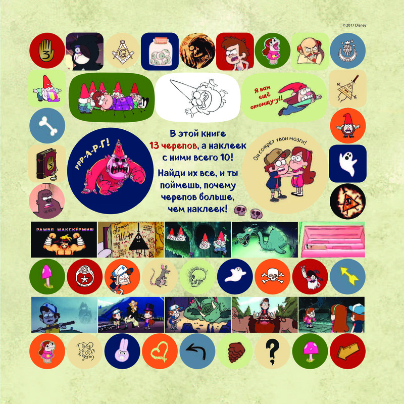 Гравити Фолз. 200 наклеек. Необычайно необычноеВ данный момент этот товар отсутствует в продаже. Возможно, у нас найдется аналогичный или похожий товар здесь. Серия: Disney. Гравити Фолз Необычное рядом с тобой — просто возьми 200 наклеек с героями и кадрами из сериала и создай собственную историю Гравити Фолз! |