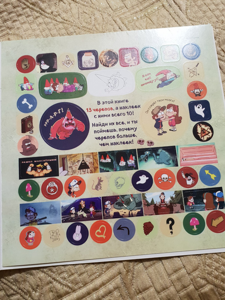 Сын мой, в восторге от книг и наклеек, покупали Гравити Фолз. 200 наклеек, Гравити Фолз. Дневник Диппера и Мэйбл. Прочитал дневник за три дня!!! Раньше, вообще ничего не любил, читать не заставишь. А тут прочитал и говорит, поехали покупать другую Гравити Фолз, Дневник 3. Купили. Вот читает)))) Качество книг супер.