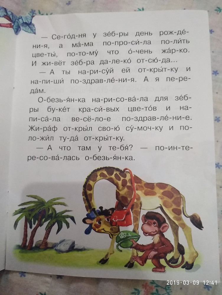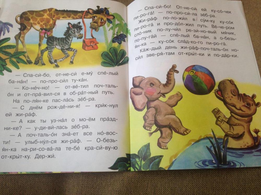 Жираф-почтальон и его друзьяВ данный момент этот товар отсутствует в продаже. Возможно, у нас найдется аналогичный или похожий товар здесь. Серия: Читаем по слогам Серия «Читаем по слогам» представляет книжку для обучения чтению. Слова разделены на слоги, а также проставлено ударение, для правильного произношения слова. |