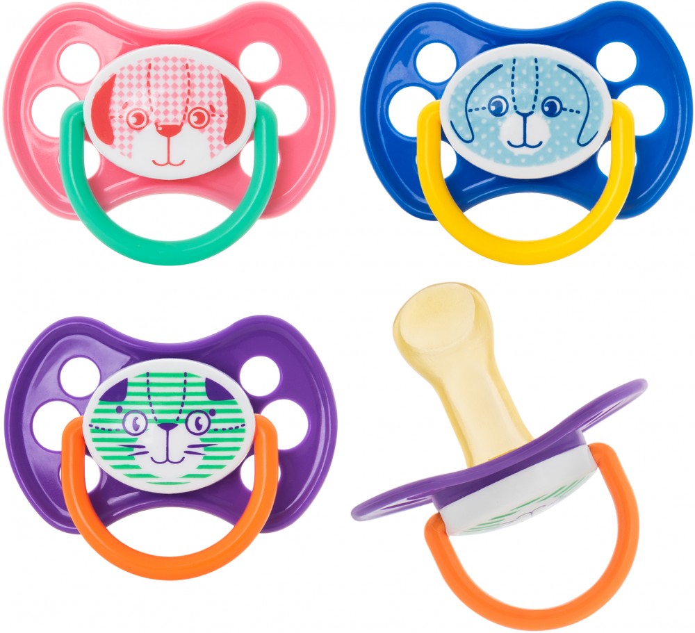 Ортодонтическая форма пустышки имитирует форму соска материнской груди в момент кормления, за счет этого процесс сосания максимально приближен к естественному. Большие отверстия нагубника обеспечивают свободную циркуляцию воздуха во время сосания и помогают предотвратить намокание и воспаление кожи вокруг рта.