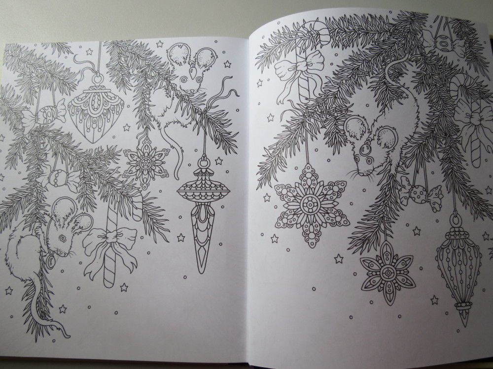В прошлой раскраске этой серии бумага была тонковата, при раскрашивании лист сворачивается. В этой раскраске вернули ту же бумагу, что и в первых выпусках. Бумага плотная, но фломастеры и акварель просочатся. А вот акварельные карандаши пойдут, если размывать их небольшим количеством воды. В этот раз все картинки посвящены временам года и праздникам, всё очень красиво.