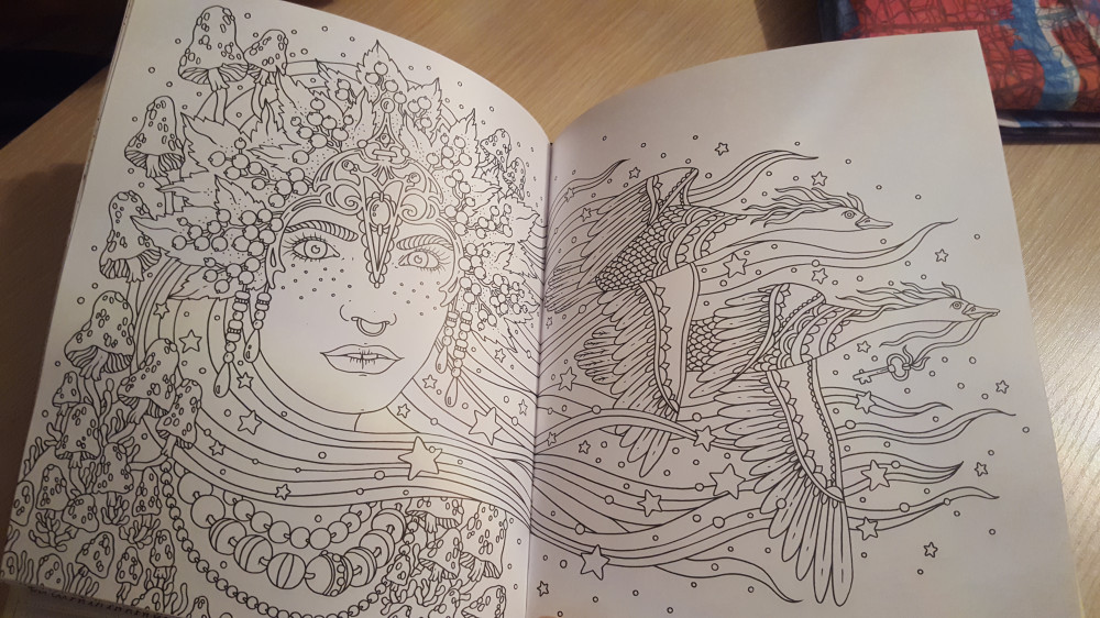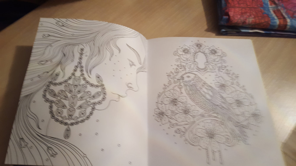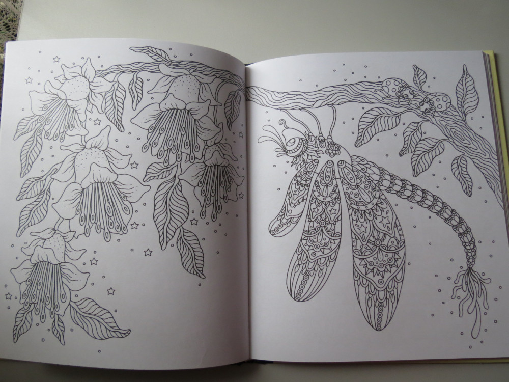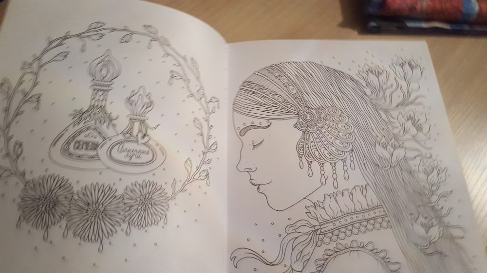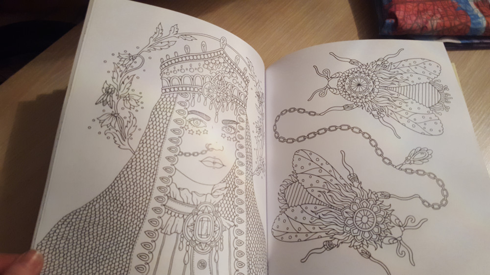 Книга очень красивая. Рисунки интересные, но я пока не поняла бумагу в раскраске. Карандашей у меня три разных вида, и ни одни не ложатся хорошо. Буду искать подходящий материал для раскрашивания.