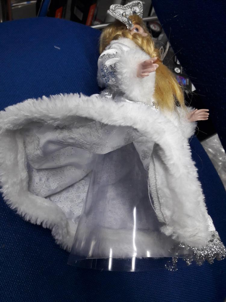 Спасибо! Кукла, в принципе, красивая за такие деньги - немного похожа на Кристину Орбакайте -нос такой же, но разочаровало то, что она без ног :O (пластиковый конус под юбкой - для того, чтобы она стояла и все). Заказывала той же фирмы Деда мороза - пришел шикарный с ногами в ботинках, а тут прямо и не знаю, что делать, надо что-нибудь придумать.