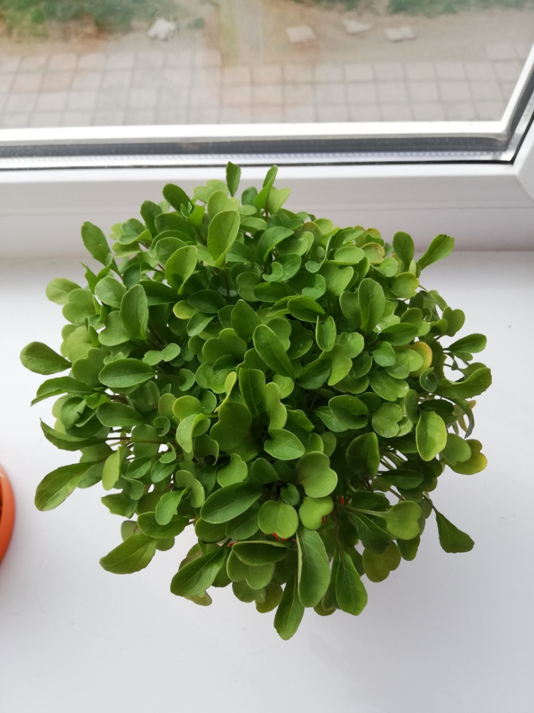 Эта руккола сорта Колтивата, она обычно спеет за 20-25 дня. В начале росточки имеют небольшие округлые листочки, а следующие листья по мере роста уже имеют овальную форму. Высаживали в начале марта, в конце марта уже добавляли в салаты :)