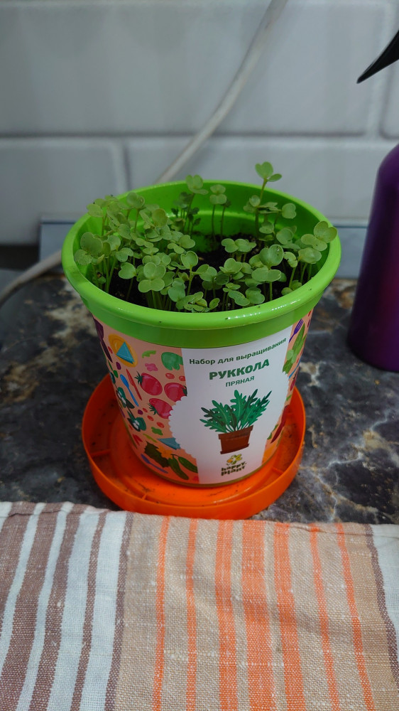 Покупкой очень довольна! Руккола взошла на 2й день, на фото растению 5 дней; Спасибо Флип за доставку👍