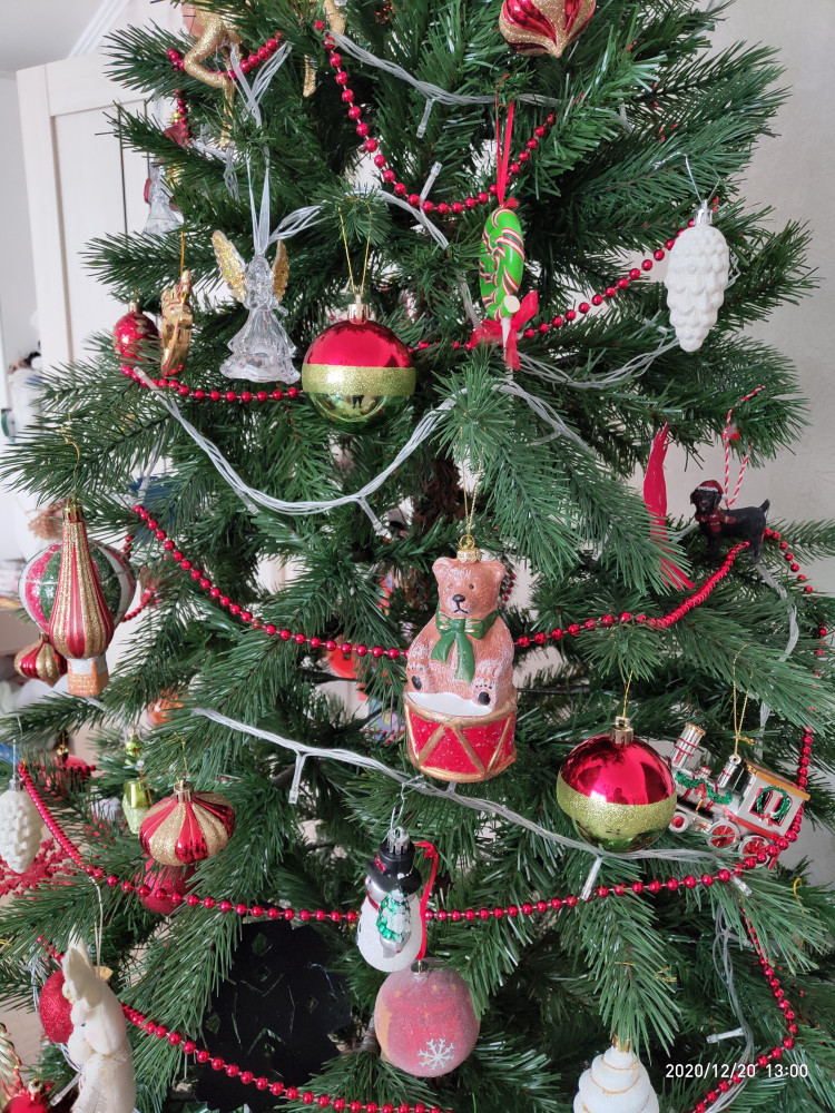 Не думала, что так шикарно будет смотреться на ёлке мишка. Спасибо Флип.