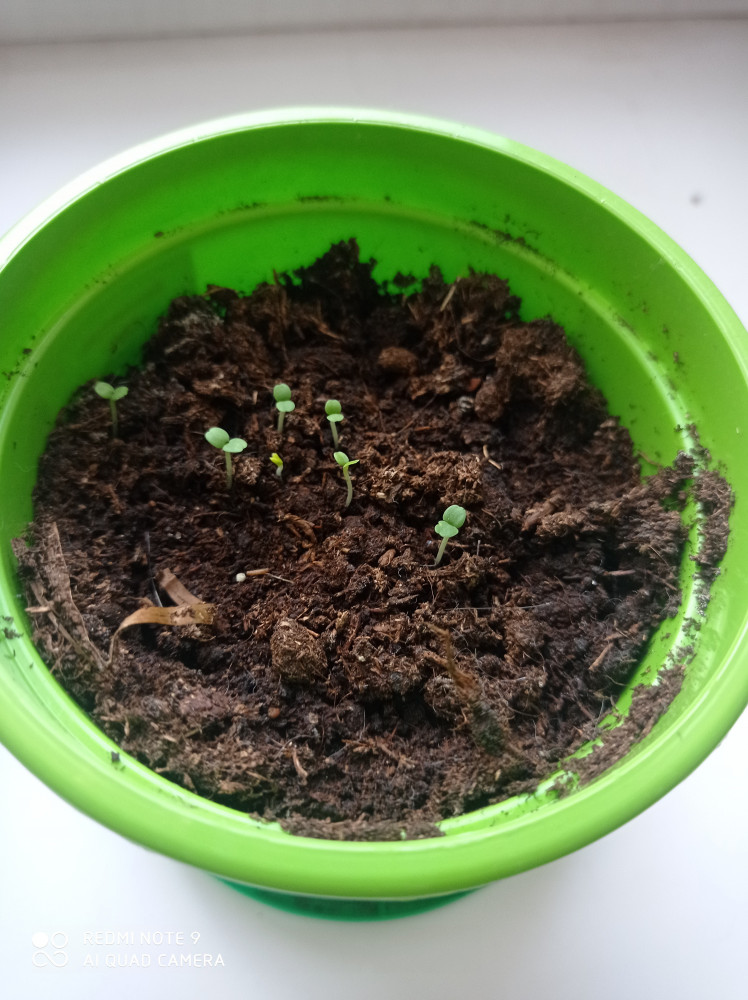 Семена начали появляться примерно на 7 день, но в итоге не прижились и зачахли.