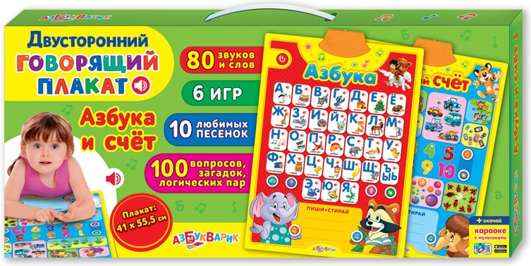 Двусторонний говорящий плакат станет незаменимым помощником родителей! На одной стороне плаката — говорящая азбука, на другой — веселый счет. Нажимай на буквы и цифры — учи алфавит и считай до 10.