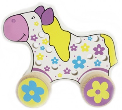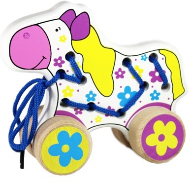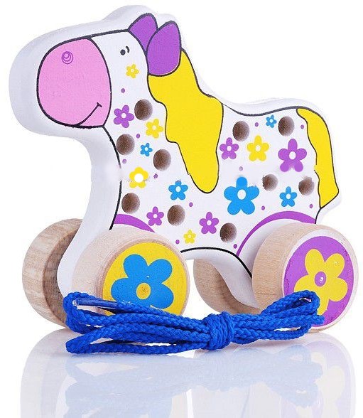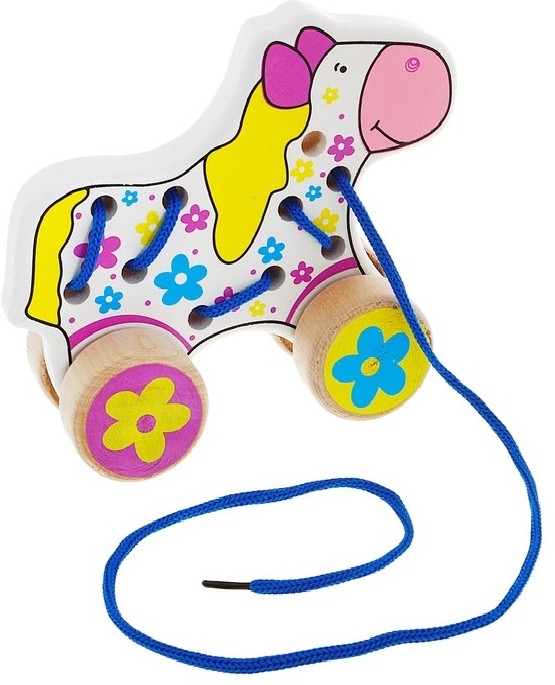 В данный момент этот товар отсутствует в продаже. Возможно, у нас найдется аналогичный или похожий товар здесь. Шнуровка-каталка на веревочке «Лошадка» - это милая и забавная игрушка, которая сможет порадовать маленького ребенка. Фигурка выполнена из дерева в виде милой белой лошадки, украшенной розовыми и голубыми цветочками.