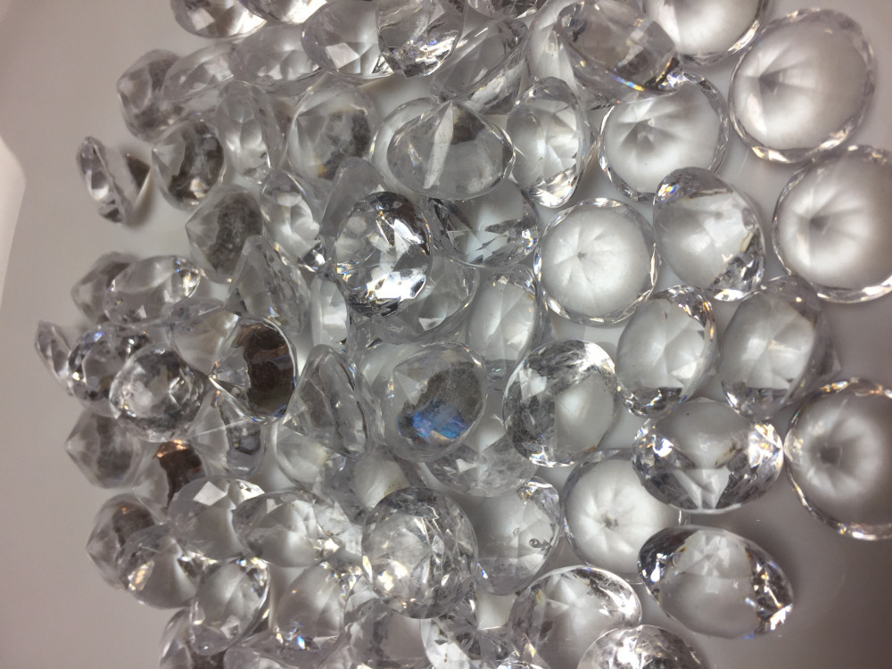 Прозрачные кристаллы не такие глянцевые, как зеленые и красные, но за счёт бриллиантовой огранки блеска достаточно. Покупала кристаллы всех трёх цветов, но ни в одном пакетике не оказалось заявленных 58 штук. Зелёных и красных 56-57, белых - 82. Но вес у всех пакетиков примерно одинаковый 150 гр.