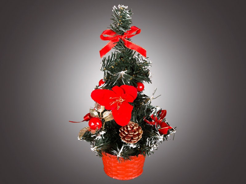 Отзывы «Елочка настольная (25 см), с бантиками, цветами и шишками, в корзинке»