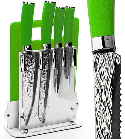 Отзывы «Набор ножей + доска разделочная (зеленый, 5 предметов)»