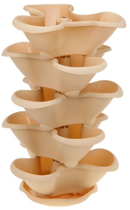 Супер штучка! покупала для земляники. Достаточно компактно смотрится в сборе. Пластик аккуратный, прочный, розетки друг на друга ставятся хорошо, фиксируются надежно. Единственное,что производитель немного не учел - какую-то бы трубку посредине, для большей надежности, чтобы они по центру фиксировались, в целом очень довольна. Заказывала 4 комплекта - все пришли целыми, хотя одна коробка снаружи была немного помята. Рекомендую 100%!