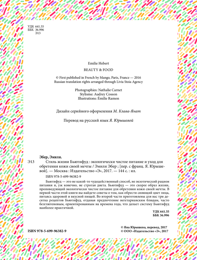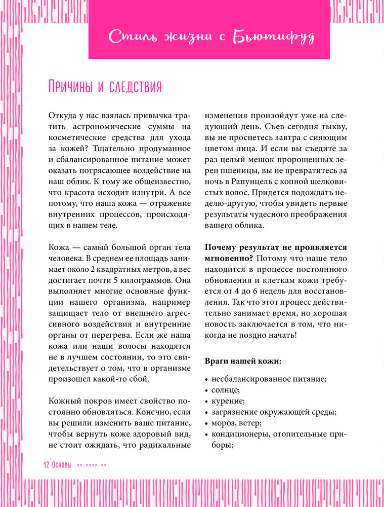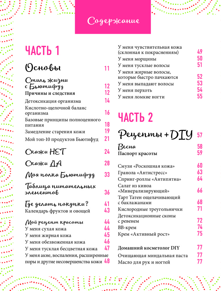 Красивая книга, с множеством иллюстраций. Много советов по питанию и уходу за кожей. Рецепты бьюти еды и приготовления уходовых средств для кожи в домашних условиях. Покупкой очень довольна.