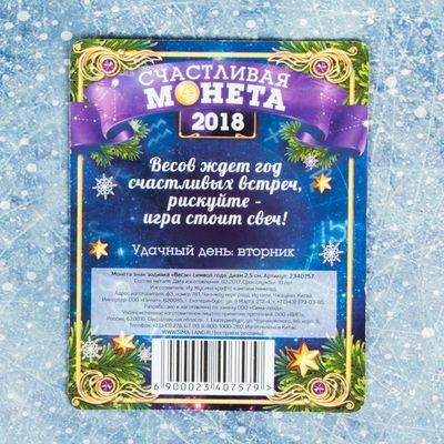 Монета знак зодиака «Весы» символ годаВ данный момент этот товар отсутствует в продаже. Возможно, у нас найдется аналогичный или похожий товар здесь. Серия: Символ года 2018 Новый год — праздник, который с нетерпением ждут и взрослые, и дети. Это день, когда все мы не просто хотим получить подарок, а попасть на мгновение в сказку, наполненную чудесами и волшебством. |
