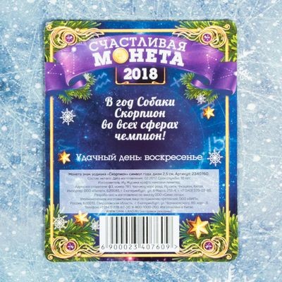Монета знак зодиака «Скорпион»В данный момент этот товар отсутствует в продаже. Возможно, у нас найдется аналогичный или похожий товар здесь. Серия: Символ года 2018 Новый год — праздник, который с нетерпением ждут и взрослые, и дети. Это день, когда все мы не просто хотим получить подарок, а попасть на мгновение в сказку, наполненную чудесами и волшебством. |