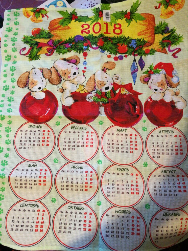 Полезный и оригинальный атрибут на кухне, а календарь в качестве рисунка на полотенце - хороший ход