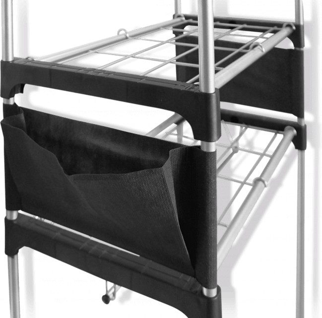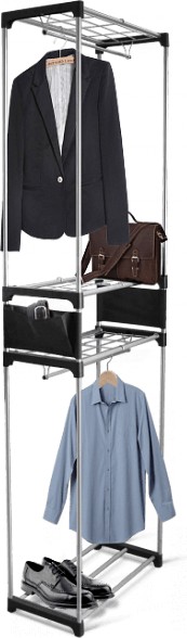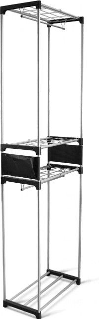 В данный момент этот товар отсутствует в продаже. Возможно, у нас найдется аналогичный или похожий товар здесь. Гардеробная за пять минут — поможет разместить множество ваших вещей. Высокая вешалка с двумя штангами позволяет рационально использовать площадь пола. В ней предусмотрены 4 полки, 2 штанги для вешалок-плечиков и 2 боковых кармана. Среднюю полку можно устанавливать в любой последовательности.