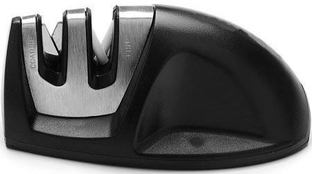 Присоединяюсь ко всем положительным отзывам. Хочу отметить, что металлические пластины, точилки, изготовлены из очень качественной стали, при первичной заточке ножей они создают фаску под нужным углом (даже сыплется стружка, думала, если заточка будет проводится так каждый раз, то ножей на год не хватит. Но последующая заточка просто поддерживает заданный угол). В плане удобства пользования, считаю, что точилки с ручкой, которую можно удерживать всей ладонью, более удобны и безопасны, но они и стоят в два раза дороже.