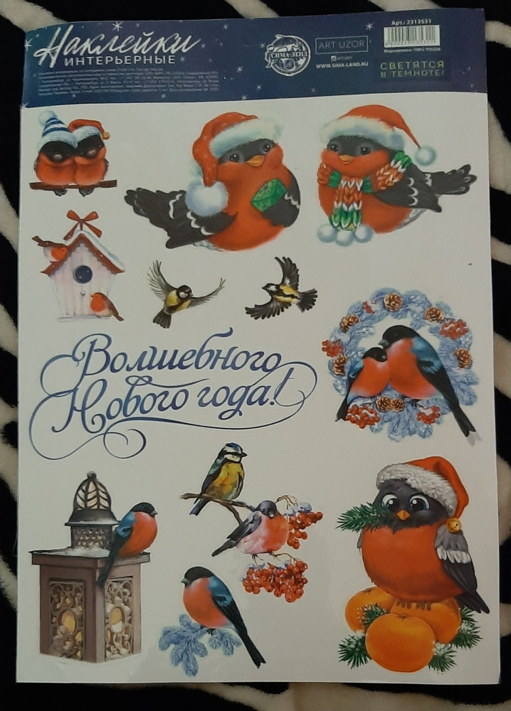 Обожаю снегирей, поэтому не удержалась и приобрела эту наклейку. Наклейки данной фирмы приходят без упаковки, что не есть хорошо, но на складе ее упаковали очень аккуратно, не помялась, в темноте не светится, наверно надо "зарядить". Выглядит как на фото. Спасибо команде Флип.
