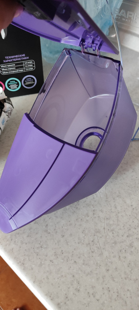 Отлично фильтрует, быстро,в чистоте 1,5литра.Удобный дизайн, легко наливать воду.
